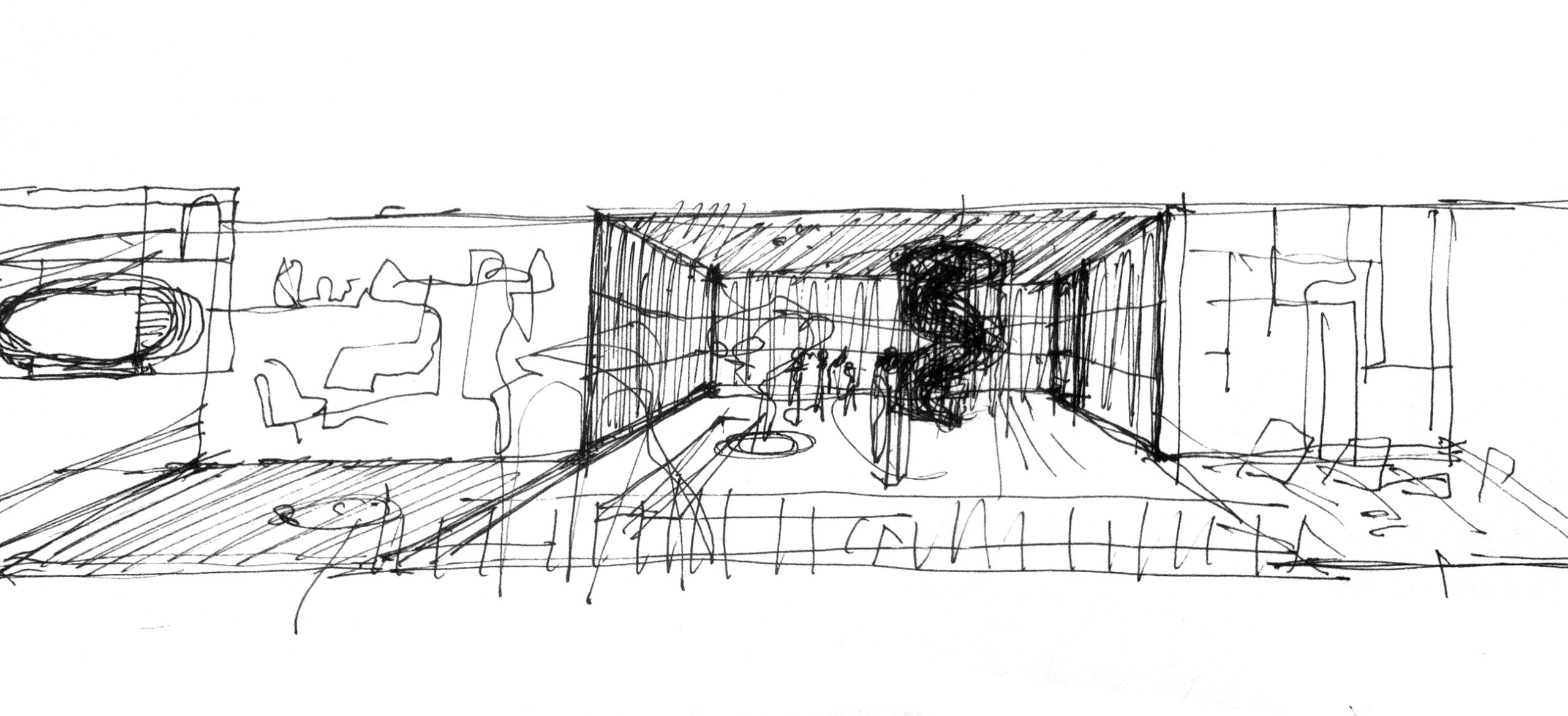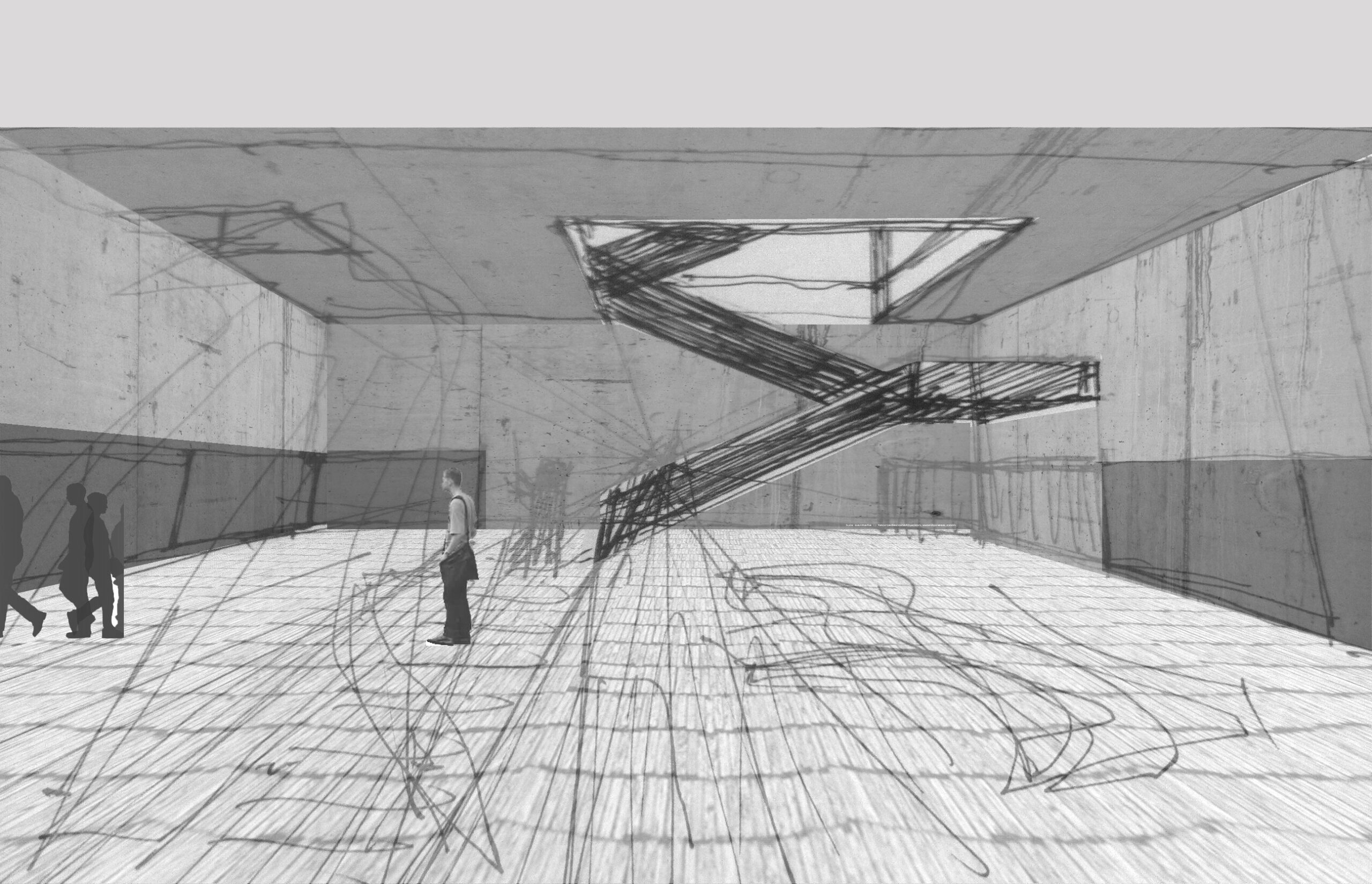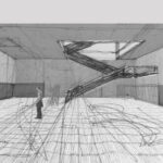 La concepción compositiva del proyecto se basa en la utilización de una escala no convencional, es decir, se basa en la alteración del tamaño habitual de los elementos arquitectónicos. Desde la dimensión del vuelo del prisma elevado, al tamaño del hueco que sirve de entrada al edificio, todos los elementos externos muestran una escala atípica: son mucho mayores de lo que normalmente se espera de ellos.